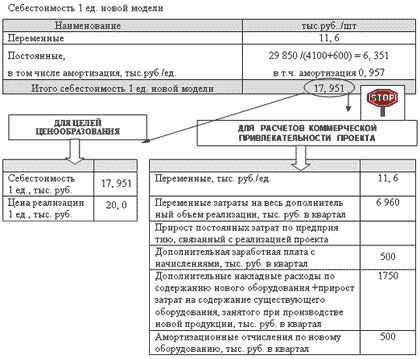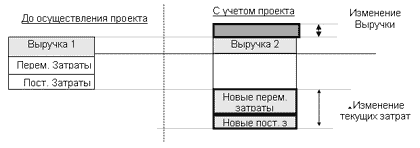 Себестоимость продукции объединяет в себе затраты как уже существующие, так и вновь возникшие в связи с реализацией проекта. Соответственно, это не позволяет определить дополнительную прибыль, которую приносит проект предприятию, то есть мы не можем корректно оценить его эффективность. Таким образом, для оценки эффективности проектов, осуществляемых на действующем предприятии, необходимо оценивать приросты затрат (и доходов), связанных с реализацией этих проектов.