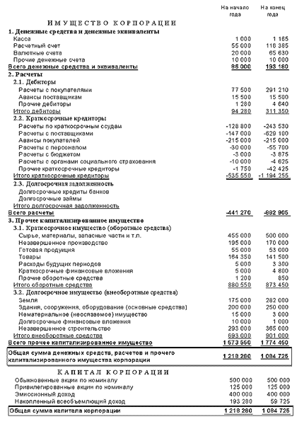 Образец финансового отчета о состоянии имущества предприятия («Баланс имущества» – цифровые данные в приводимых здесь и далее примерах и иллюстрациях заимствованы из упомянутой выше статьи «Финансовая отчетность без калькулирования») приведен на рис. 2. Рис. 2. Баланс имущества Читая и анализируя этот документ, инвестор сможет составить предварительное заключение о способности предприятия продолжать свою деятельность в ближайшем будущем, то есть о соблюдении предприятием ключевого ограничения. Поэтому принципиально важной является справедливая оценка капитализированного имущества именно по чистым продажным ценам, а не по прошлым затратам, так как инвестору важно знать реальную сумму денег, которая может быть выручена от продажи имущества. От этого зависит сохранность инвестированного капитала: в случае недостаточности стоимости имущества для покрытия всех обязательств увеличивается риск полной утраты вложенных инвестором средств. Безусловно, любой вывод на основании изучения Баланса имущества будет лишь субъективной оценкой – реальное банкротство далеко не всегда обусловливается лишь плохой структурой баланса. Тем не менее, располагая своевременной информацией о соотношении обязательств и имущества предприятия, инвестор может более точно оценить риски, связанные с владением ценными бумагами, и определиться с уровнем ожидаемого дохода от этих бумаг, который был бы для него достаточным, чтобы компенсировать более высокие риски. |