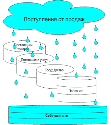 Если в процессе своей деятельности предприятие испытывает недостаток денежных средств и последних всегда не хватает, то сам факт присутствия прибыли в финансовой отчетности может сбить с толку вот логика руководителя- казначея . Понимая всю важность расчетов прибыли за отчетный период, он знает, что на самом деле руководитель должен управлять не виртуальным финансовым результатом, а материальным денежным потоком. По этой причине отчет о движении денежных средств является объектом его пристального внимания. Управленческая дилемма кому из контрагентов достанутся денежные средства, которые имеются сегодня в наличии на нашем расчетном счете занимает основное место в контуре организации финансового управления. Платежный календарь является наиболее популярным инструментом рабочего пространства, организованного себе казначеем . В процессе распределения денежных потоков руководители компаний выделяют основные направления оттоков в разрезе операционной, инвестиционной и финансовой деятельности. Несмотря на важность двух последних, большую часть времени казначей тратит на решение проблем в операционной сфере деятельности, являющейся основной для компании. Денежные потоки распределяются по направлениям оттоков между внутренними и внешними кредиторами: поставщиками товаров (материалов); поставщиками услуг; государством; персоналом; собственниками. Денежная наличность, которую генерируют активы компании в процессе основной деятельности, распределяется между теми, кто предоставил эти активы.