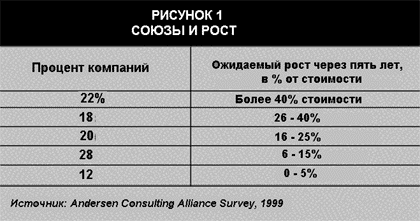 Глобализация бизнеса заставляет искать способы усиления экспансии и конкуренции. В этом десятилетии определяющей организационной формой может стать совместное предприятие (jont venture). В будущем, по оценкам Andersen Consulting, создание альянсов будет важнейшим средством для роста (см. Рис. 1).