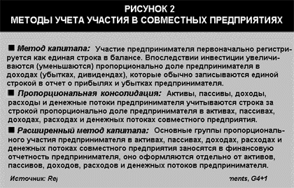 В Канаде понимают совместные предприятия более широко и требуют пропорциональной консолидации. IASC определяет СП примерно как и Канада, но допускает и пропорциональную консолидацию, и "метод капитала". Знающий бухгалтер может интерпретировать международные стандарты, намечать условия сотрудничества исходя из намерений руководства и затем готовить нужные финансовые отчеты (см. Рис. 2).