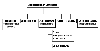 | С точки зрения маркетингового консультирования, оргструктура маркетинга может быть любой, при условии, что она обеспечивает выполнение основных функций. Для маркетинга в целом характерно также распределение его функций в сбыт, закупку, управление предприятием. Для большинства российских предприятий, выделяющих в своей структуре подразделение маркетинга, характерны два основных вида интеграции маркетинга на предприятии: маркетинг, как функция управления, и маркетинг, как функция обслуживания. Два возможных варианта построения таких структур представлены на сх.26 и сх.27.