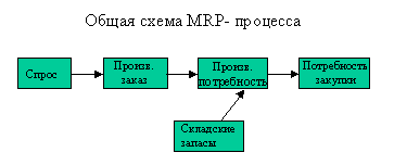 | Цель процесса планирования потребности (MRP-процесса) - преобразовать информацию о спросе в производственный заказ (который будет доведен до управления цехом и утвержден для исполнения) и сформировать распоряжения по закупке (на основании которых будет построен календарный план закупок).